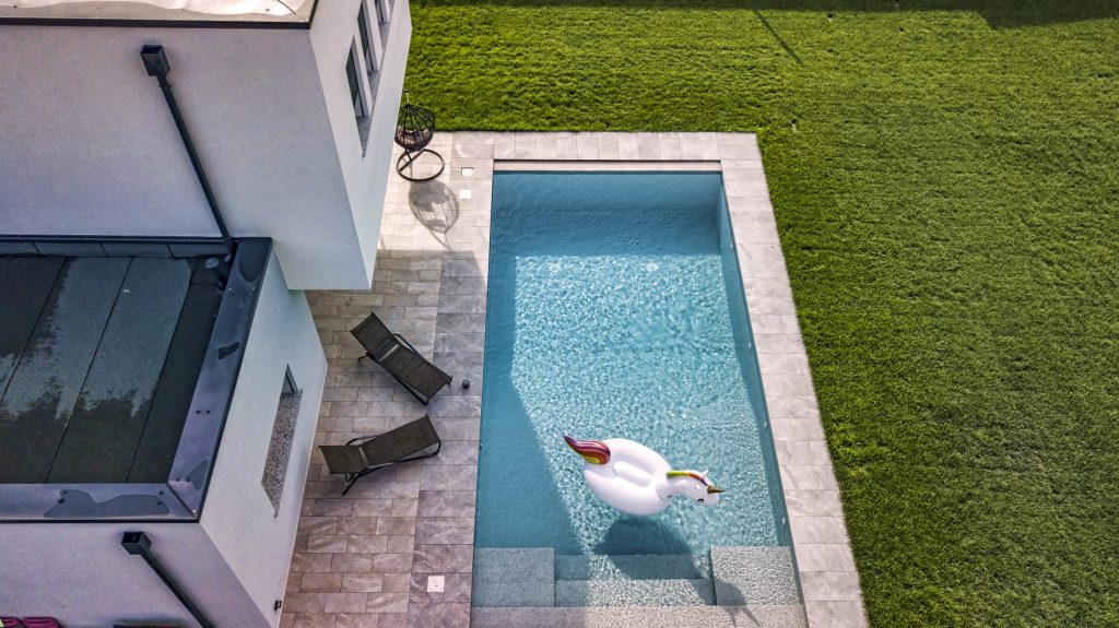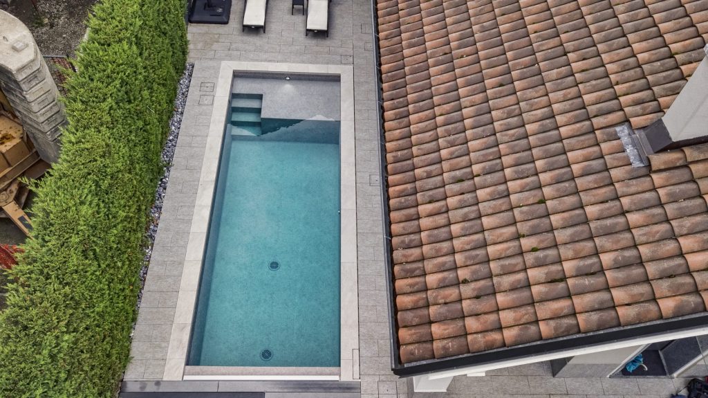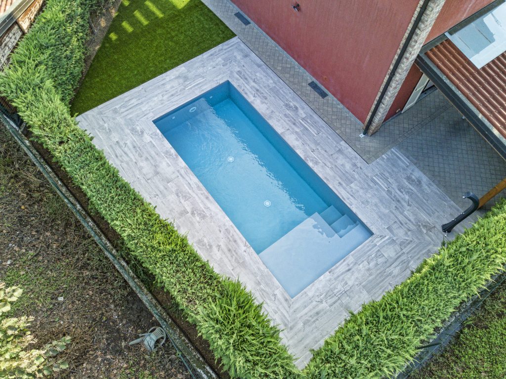 Si tratta di una piscina privata interrata outdoor dalla forma rettangolare, linee precise e pulite e tonalità delicate. La struttura della vasca di 7x3m è stata realizzata in casseri EPS ed ha una profondità costante di 1.3 m, perfetta per nuotare e rilassarsi a bordo vasca. Il sistema di ricircolo è a skimmer. La vasca […]