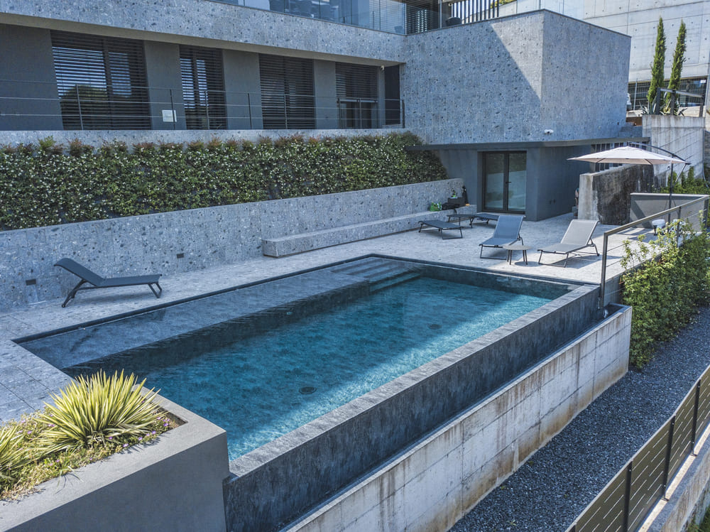 Una piscina di design che interpreta il lusso contemporaneo con essenzialità, eleganza e silenziosa bellezza.
