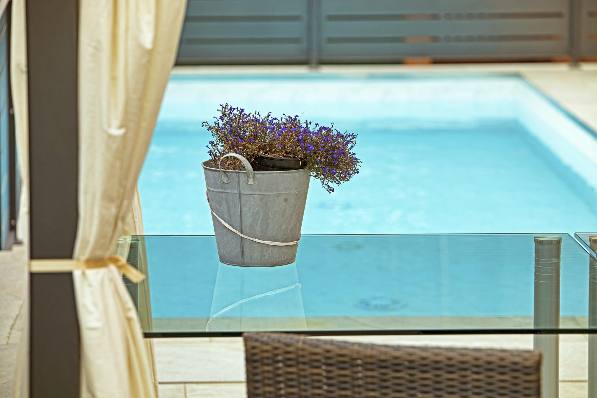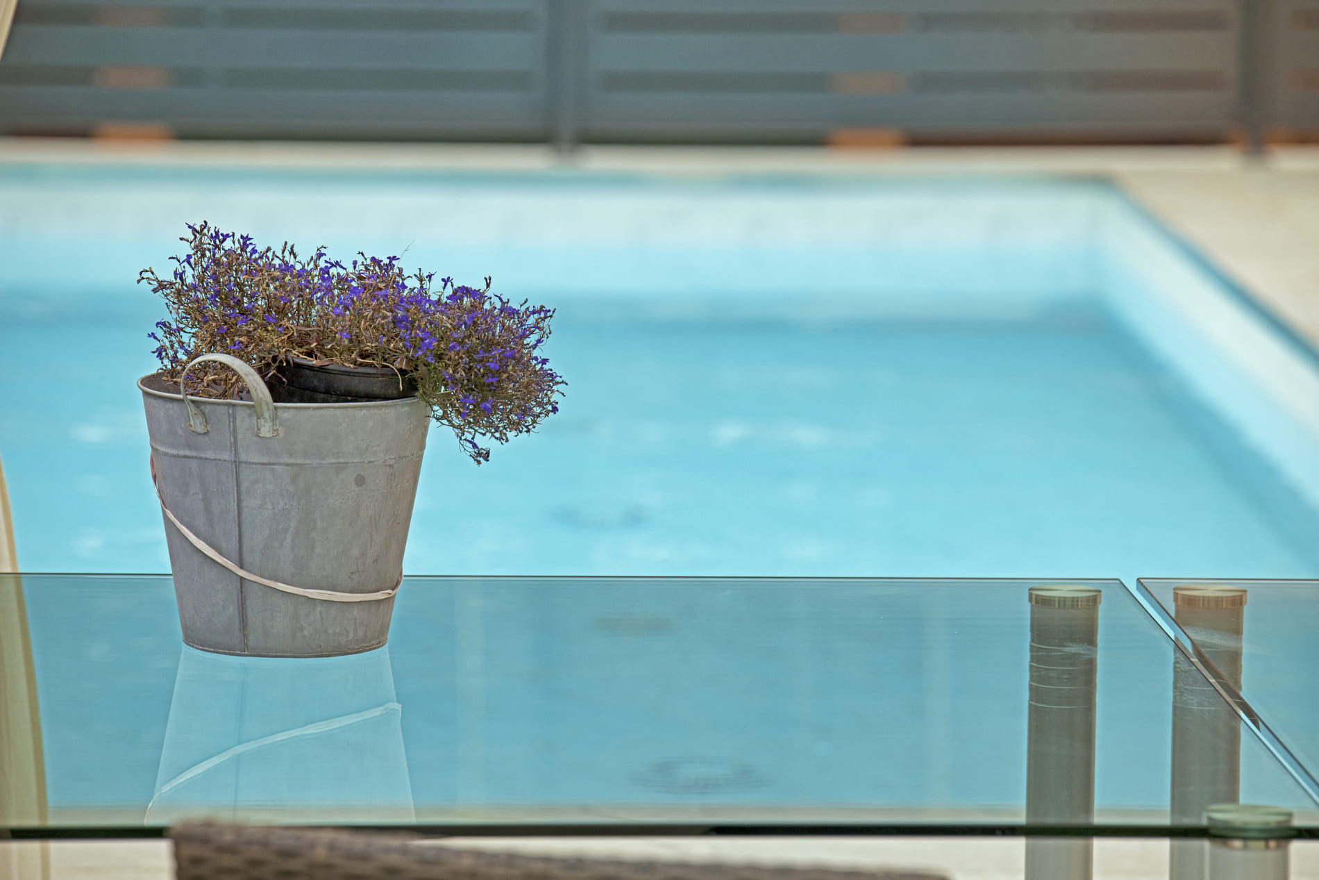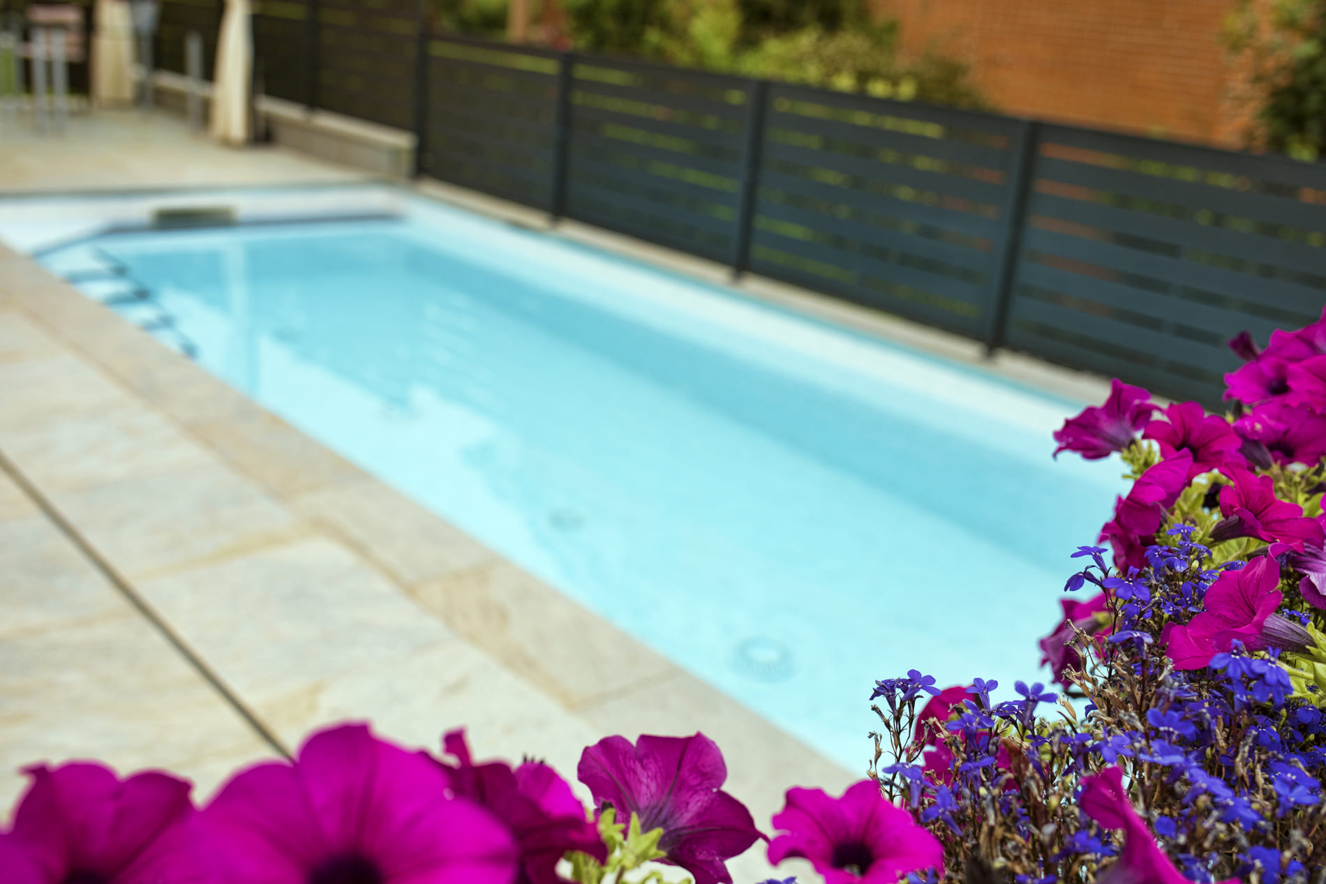Esempio pratico di come poter ricavare una piscina anche in assenza di spazio sufficiente in giardino. Piscina privata interrata outdoor dalla forma rettangolare. La struttura della vasca di 7x3m è stata realizzata in cemento armato ed ha una profondità costante di 1.5 m. Il sistema di ricircolo è a skimmer.